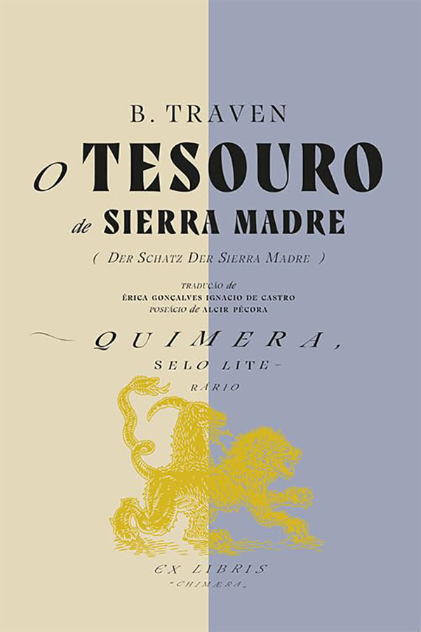 Quando Celso Queirós e eu pensamos em editar B. Traven na Coleção Quimera, ainda não tínhamos ideia da saga que enfrentaríamos, a começar pela dificuldade de localização dos herdeiros, que afinal encontramos após um ano de buscas. Agora, porém, já nada importa diante da alegria de editar o livro que fecha a trinca maravilhosa dos três primeiros romances de B. Traven. Depois de O navio da morte e de Os catadores de algodão, ambos protagonizados e narrados em primeira pessoa pela personagem de Gerard Gales, saiu agora O tesouro de Sierra Madre, o primeiro em terceira pessoa e sem a participação de Gales. Mais importante ainda, a edição da Coleção Quimera traz ao público uma tradução para o português do Brasil feita do original alemão, e não da versão adaptada para o público norte-americano, como foi feito até agora.