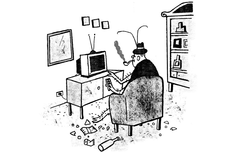 Reparem: o pai de Gregor passava o dia estendido no sofá, ruminando fracassos, emitindo sons guturais e exigindo sustento do filho. Se isso não é comportamento típico de um inseto, não sei o que é. Os ortópteros, como se sabe, são especialistas em sobreviver às custas do ambiente. Não produzem, não contribuem, mas aparecem sempre na hora de fazer uma boquinha.