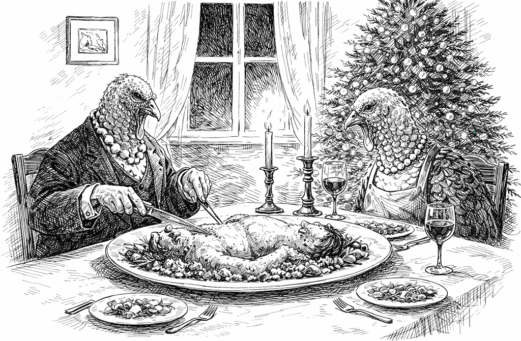 E assim, com a mais absoluta normalidade, os perus celebraram mais um Natal: agradecidos, saciados e certos de que o mundo, visto de qualquer ângulo, sempre foi absurdo.