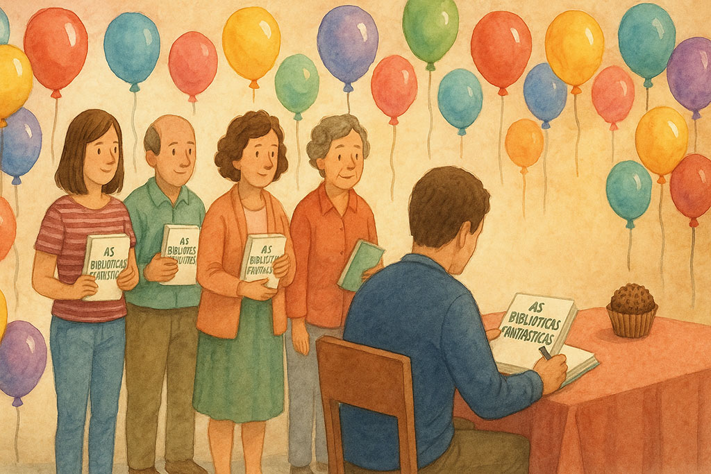 Acho interessante quando há alguma criatividade no lançamento. No de Branca de Neve e as sete versões, minha mulher se vestiu de bruxa e distribuiu maçãs (que as crianças aceitaram sem pestanejar). No de Os oito pares de sapatos de Cinderela, meu irmão Dirceu se fantasiou de príncipe e colocou sapatinhos em dezenas de meninas (levamos um modelo grande, que servia em todas). Num, houve a luxuosa leitura de trechos por Denise Fraga. Noutro, um show de música com Fernando Salem. No de As bibliotecas fantásticas, aproveitei para fazer minha festa de 60 anos com bolo, bexigas e brigadeiros.