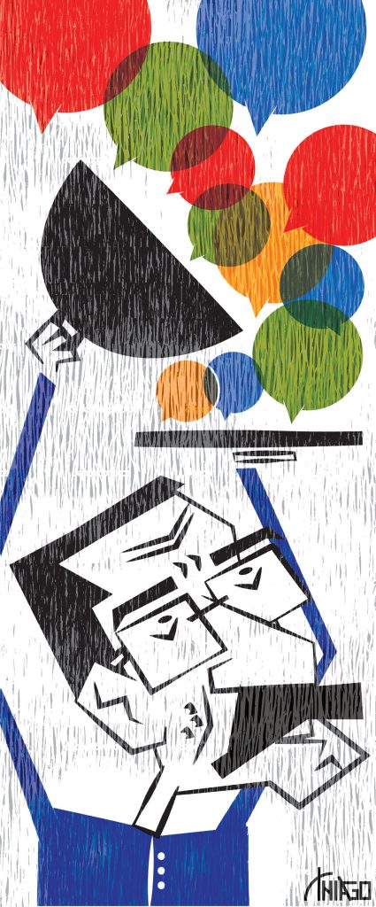 Guardo relação não muito fácil com o enfeite paterno. Tenho dúvidas a respeito da palavra escolhida, não sei bem se o bigode ocuparia a categoria de enfeite. Até por considerar que, muitas vezes, ele parece estranho na fisionomia de um sujeito: passa impressão ora imponente demais, ora meio vulgar, chegada ao cafajeste, transformando o indivíduo em simulacro de cantor de tango. Não era o caso de papai. O dele era bem cuidado, dava-lhe aparência distinta, compunha com seu rosto certa beleza. Mas também despertava em mim indesejado terror — pela característica singular que possuía. Não poderia, de forma alguma, tremer.