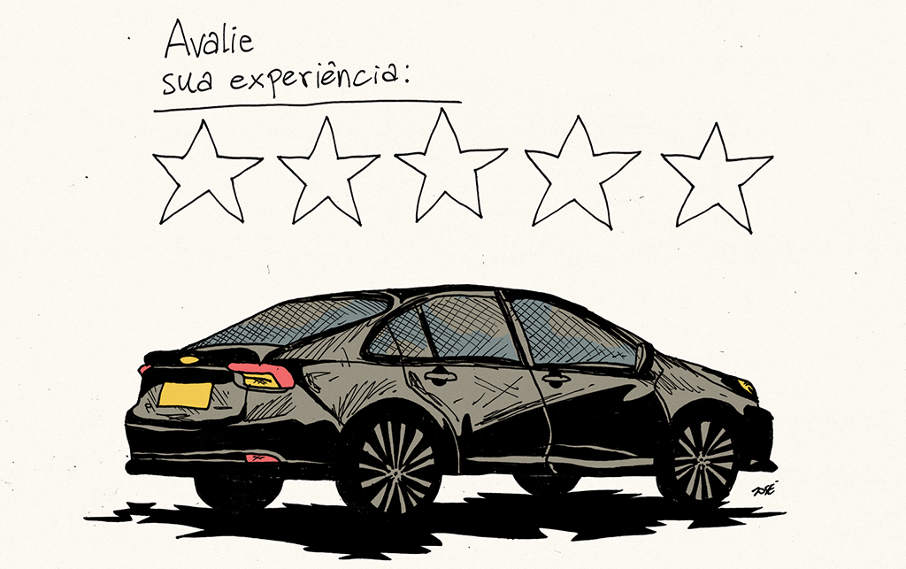 Exerceu o direito digitado no aplicativo. Manteve-se calada, agora ainda mais vigilante. Seu olhar aborrecido, visto pelo retrovisor, mostrou ao motorista o desprazer provocado pela tentativa de diálogo. Felizmente ele percebeu, desistiu. Com as duas mãos no volante, desviou de um buraco.