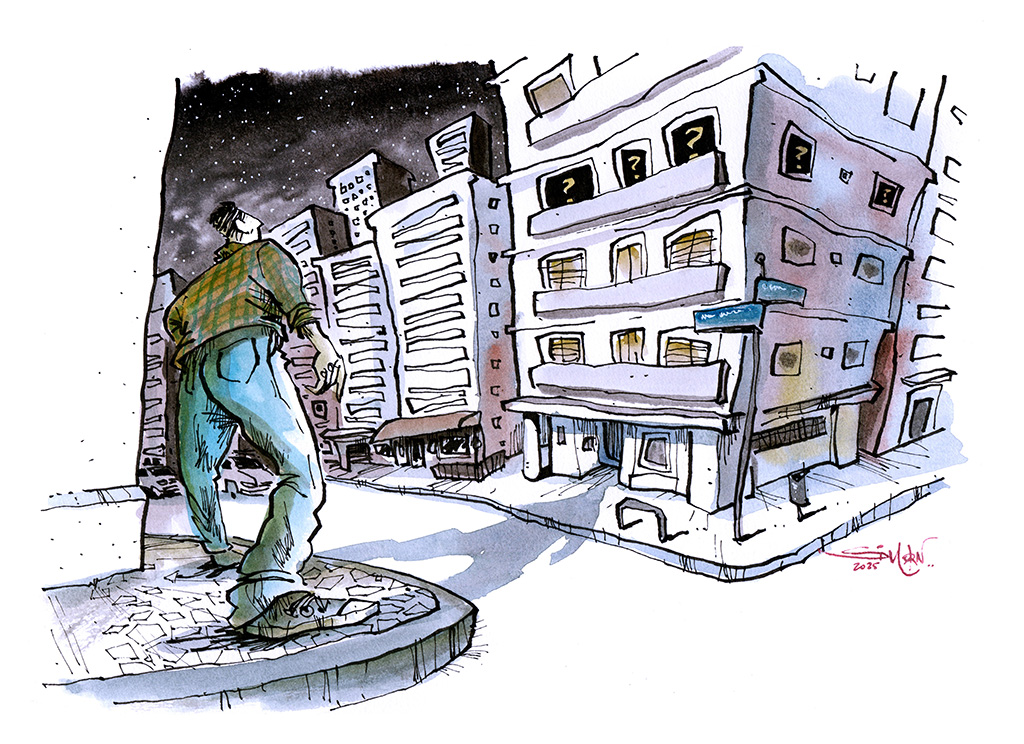 Lá por 3 da manhã, o rapaz corpulento e seus amigos resolveram sair dali e procurar uma balada. Eu me despedi deles e fiquei com o outro grupo, que tinha se animado ao pensar em subir o morro do Anhangava para ver o sol nascer lá de cima. O dono do boteco fechou as portas às 4 da manhã. Nós levamos o que sobrou da cataia e fomos até o pé do morro, apertados num tipo de Jeep antigo.